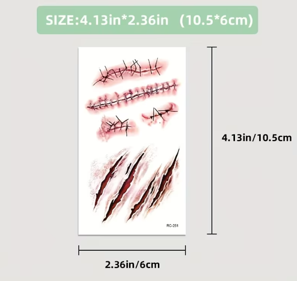 • Hyper-Realistic Design: Our tattoos are crafted with lifelike detail to mimic real scars, giving you that authentic edge.